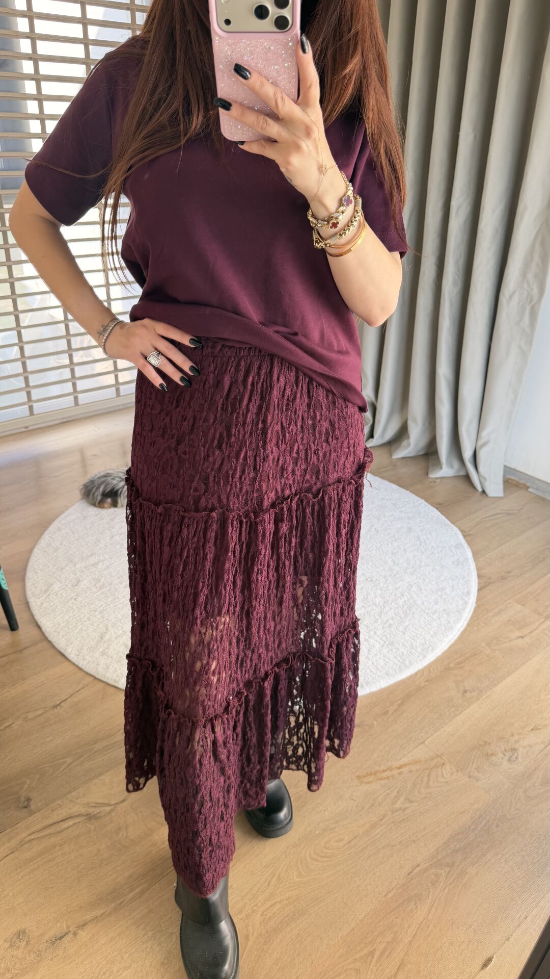 Bordo dantel etek